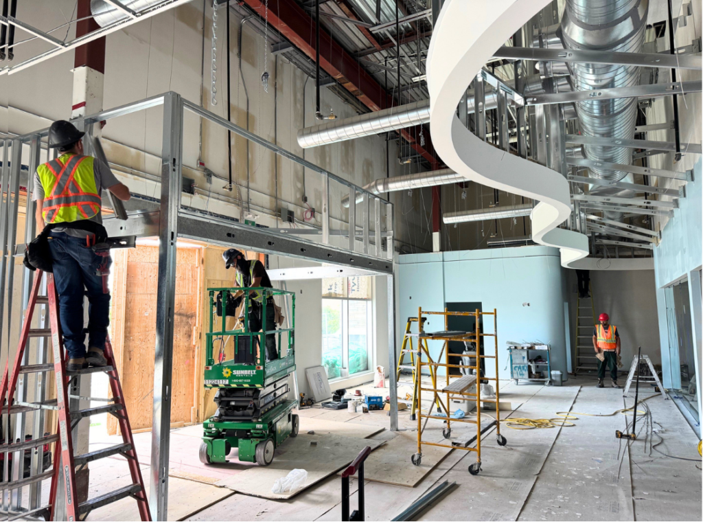 - Precision steel stud framing for complex lighting, ceiling features, and acoustic elements